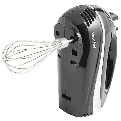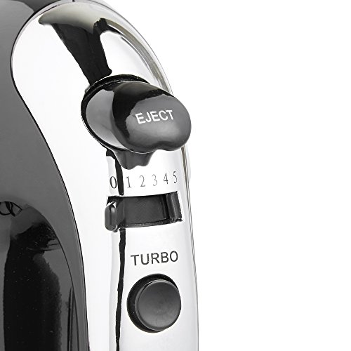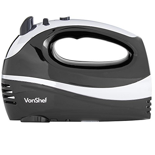 VonShef BLACK 250W Hand Mixer Whisk With Chrome Beater, Dough Hook, 5 Speed and Turbo Button + FREE Balloon Whisk