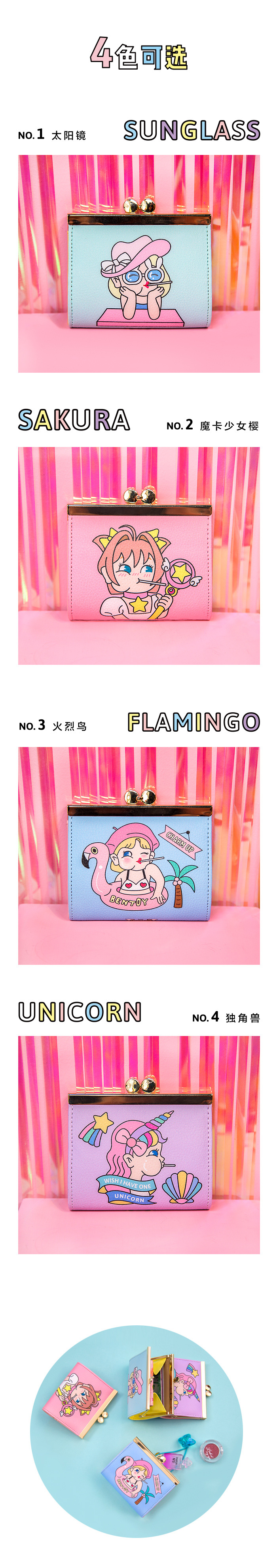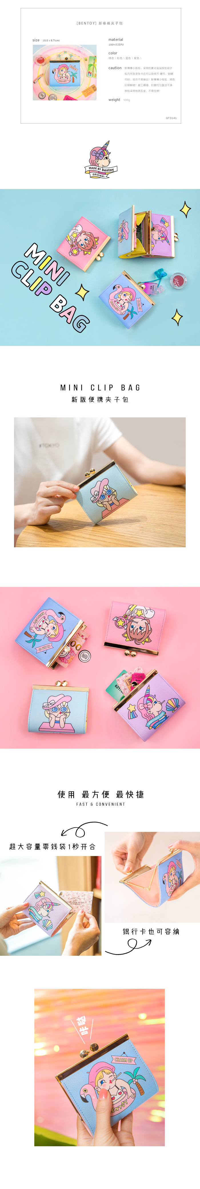 Bentoyスティックメタルクリップ財布かわいい漫画レディース財布原宿学生財布