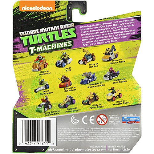 -. Binding : Toy -. Brand : Teenage Mutant Ninja Turtles -. EAN : 0043377972167 -. Feature : Utilizing Kraang Power Cell technology, Shredder and the Foot Clan are on the loose, terrorizing the city with hi-tech battle-ready vehicles; Team Green answers back and the Turtles develop their own powerful line of T-Machines to save the streets of New York; Grab your Shell and Roll / You can collect the entire world of T-Machines / Die Cast Chassis / Non-removable character / Special Flashy colorized rims -. IsAdultProduct : 0 -. ItemPartNumber : 97216 -. Label : Playmates - Toys -. Manufacturer : Playmates - Toys -. Model : 97216 -. MPN : 97216 -. PackageQuantity : 1 -. PartNumber : 97216 -. ProductGroup : Toy -. ProductTypeName : TOYS_AND_GAMES -. Publisher : Playmates - Toys -. Studio : Playmates - Toys -. Title : Teenage Mutant Ninja Turtles T-Machines Leonardo in Stealth Bike Diecast Vehicle -. UPC : 043377972167 -. Warranty : No Warranty