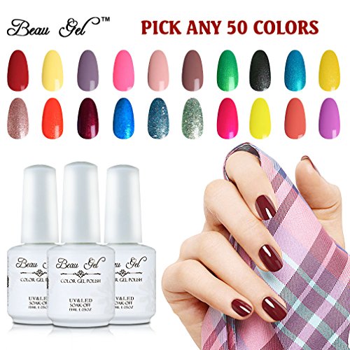 GOOD VALUE FOR MONEY: Beau Gel Nail Polish is easy to apply just like normal color gel nail polish but much more DURABLE. We have tested all the colors before we sell them. Every one of them can be Lasting for at least 2-3 weeks if apply properly and there is no need to worry about the colors will peel off or chip