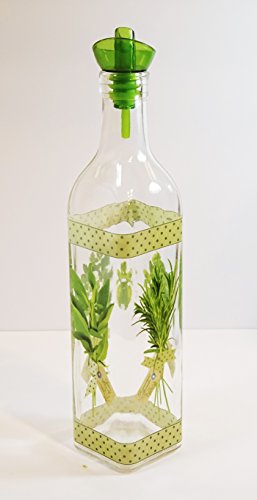 -. Binding : Kitchen -. Brand : Grant Howard -. Color : Multicolored -. EAN : 0023055507911 -. Feature : Cruet holds 16 ounces / Cute herb theme around the bottle / Pour spout helps prevent over pouring and messy spills / Recommended for infused oil and vinegar / Pourer is included with the cruet -. Label : Grant Howard -. Manufacturer : Grant Howard -. Model : 50791 -. MPN : 589305-50791 -. PackageQuantity : 1 -. PartNumber : 589305-50791 -. ProductGroup : Kitchen -. ProductTypeName : KITCHEN -. Publisher : Grant Howard -. Size : 16 oz -. Studio : Grant Howard -. Title : Grant Howard Italian Herbs Oil & Vinegar Glass Cruet with Ergonomic Pour Spout, 16 oz, Multicolored -. UPC : 023055507911