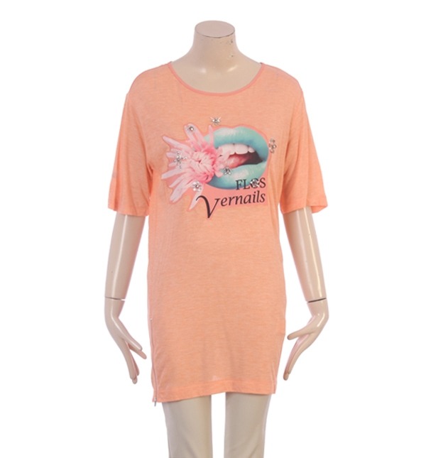 SISLEY, 모티브 스터드가 장식된 도발적인 느낌의 립프린팅으로 섹시미를 어필하는 캐쥬얼 티셔츠입니다