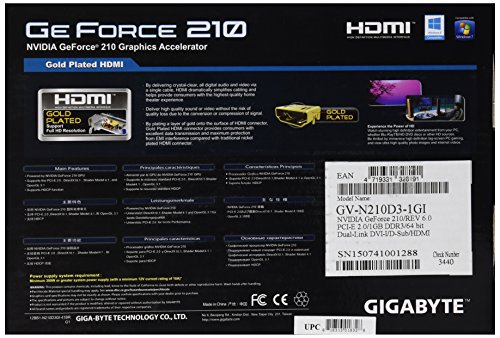GIGABYTE 210 DDR3-1GB DVI/D-SUB/HDMI LP GRAPHICS CARDS GV-N210D3-1GI REV6.0