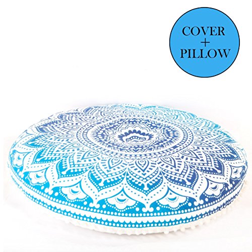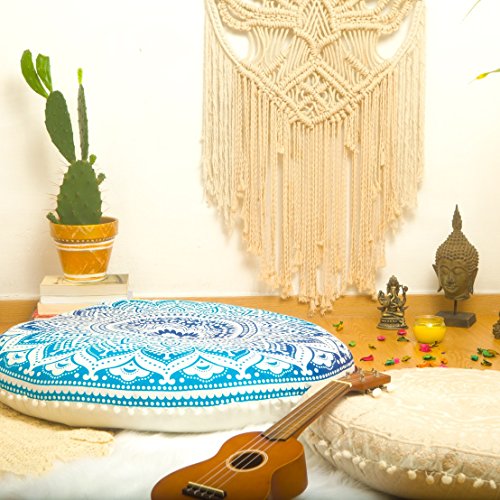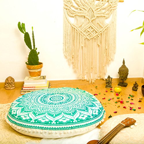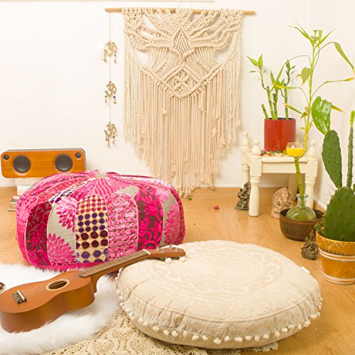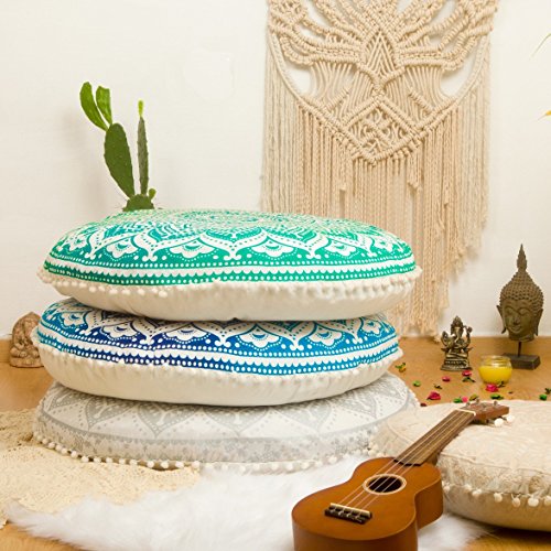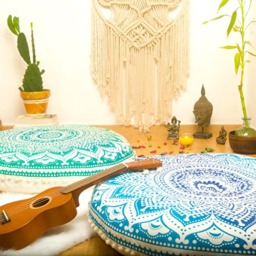 These large bohemian floor cushions are a must have for your home, made from 100% organic cotton, vegetable dyes, they measure 30" in diameter, heavy duty zip, block printed by hand & will brighten up any room. Please note, this is a cushion cover only, you will need to fill it up yourself, by using hobby fill or bean bag fill, pillow fill. NOTE: Due to hand block/screen printing process, there is likely be imperfections with print, such as slight running of dye, teeny paint spots, slight print imperfections etc. We have uncompromising gone through each one and one of them. We only selling the highest quality though keeping in mind that slight 'flaws' are part of their uniqueness. Also please take into account that that there might be a little color variance from the pictures and in person.Feature