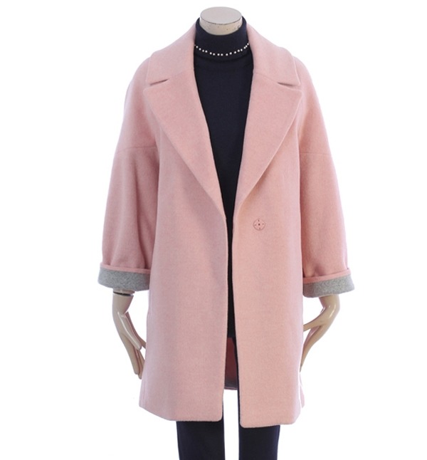 SATIN, 배색 턴업 소매로 포인트를주어 세련스러운 멋을 연출하는 모직 코트입니다