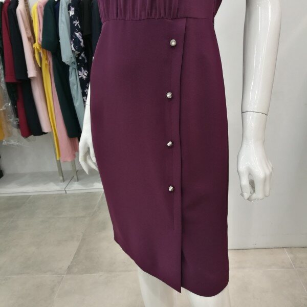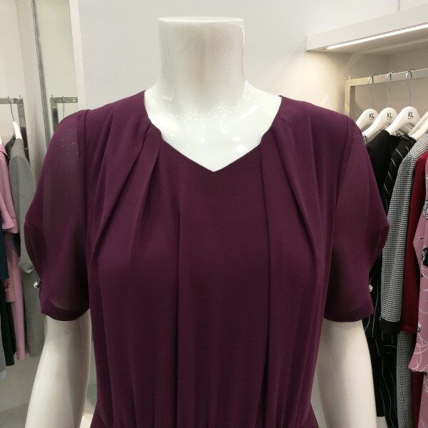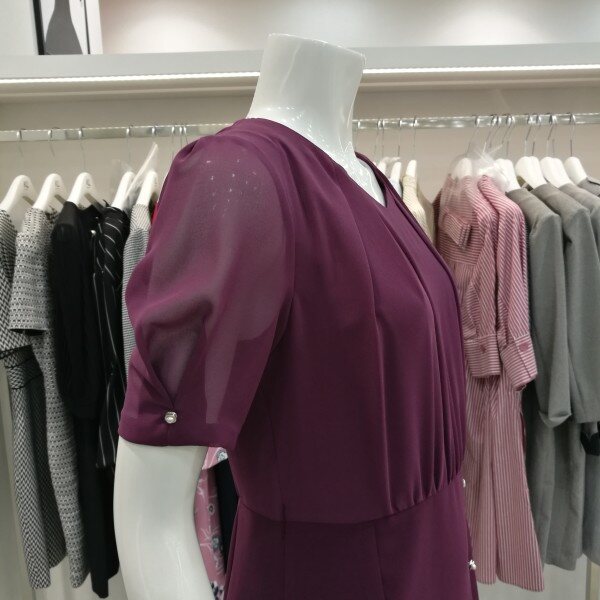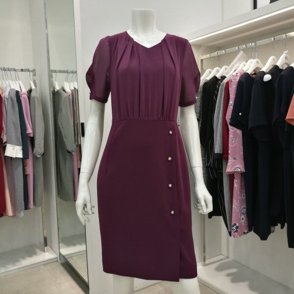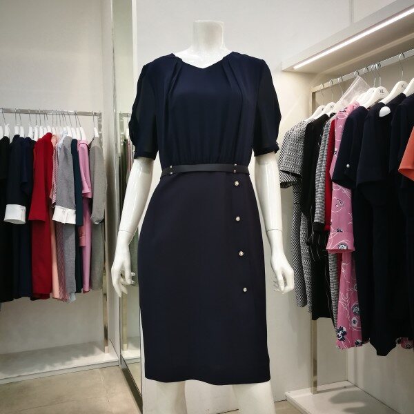 소매 부분이 쉬폰 소재로 시스루 소매입니다^-^ 앞부분 셔링과 치마 부분 단추들이 더욱 세련되었어요~ 시원함과 고급스러움 둘다 잡을 수 있는 여름 원피스 입니다!