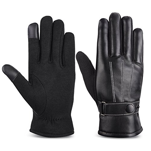 Studio : VBIGER Publisher : VBIGER Product Description Name: Autumn and Winter Warp-knitted Velvet Cashmere Male Gloves PU Leather Gloves,Warm Touch Screen Gloves in Moderate Size Process means: Sewing Material: PU leather in the back and warp-kniteed velvet in the palm Lining: Coral fleece Palm circumference: 7.87-9.05 inches Length of palm: 9.25-9.64 inches