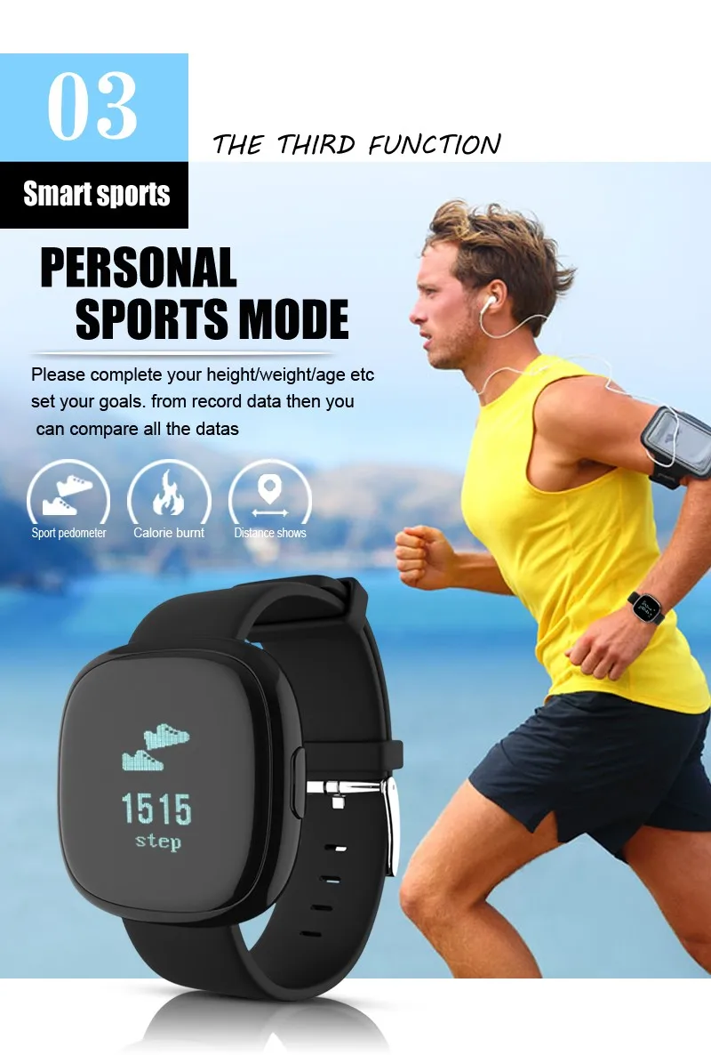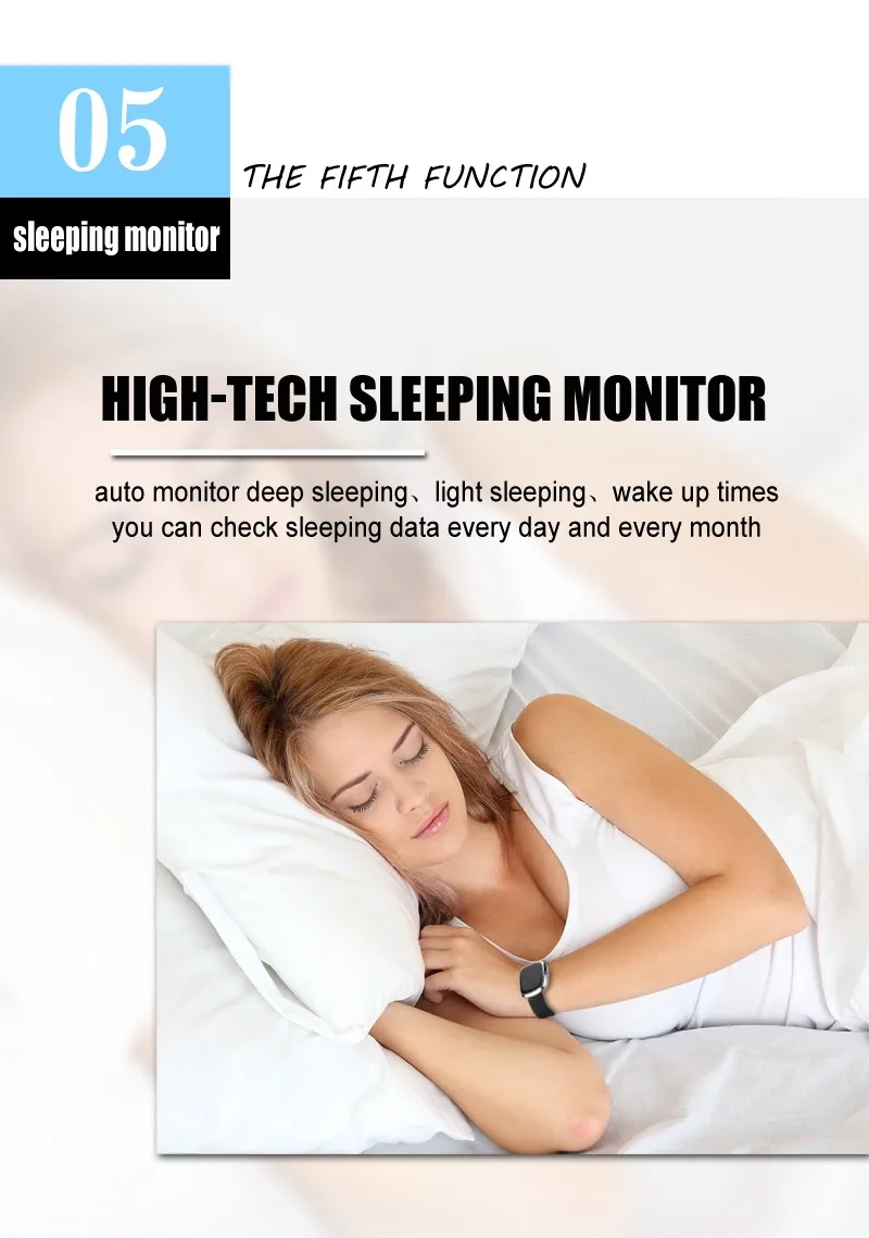 Function:Message Reminder,24 hour instruction,Passometer,Mood Tracker,Alarm Clock,Fitness Tracker,Call Reminder,Sleep Tracker,Heart Rate Tracker
