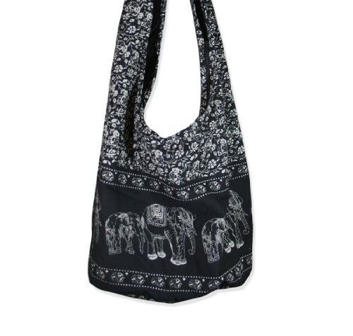 (Hippie Hobo Bag)/Accessories/Handbags/DIRECT FROM USA/Thai Monk Cotton Elephant Sling Crossbody Messenger Bag Shlouder Purse Hippie Hobo Color Black