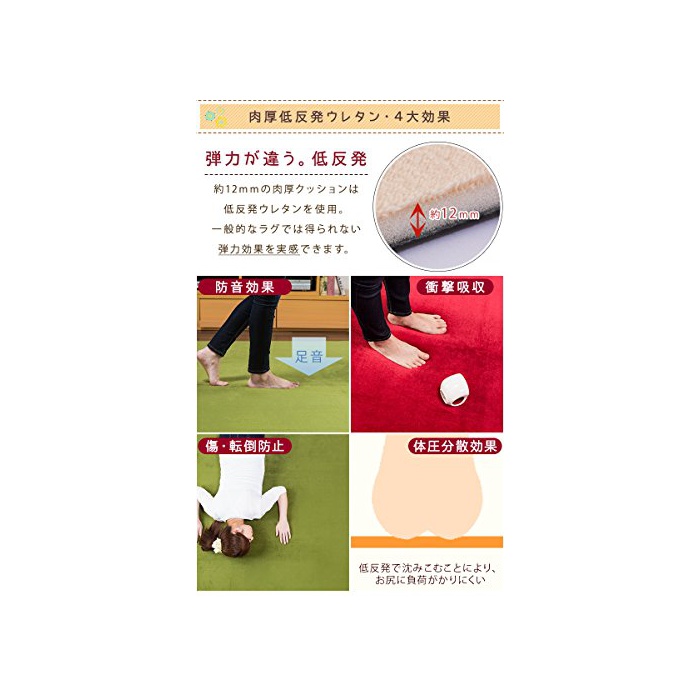 원본상품명: 【低反?のモチモチ感と?持ち良い極柔?維の肌?り 低反?クッションラグ】200×300cm(約3?用) ふんわりフランネル仕? 床暖房ホットカ?ペット?? 1年中使えるタイプ 防音衝?吸?ラグマッ