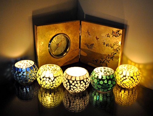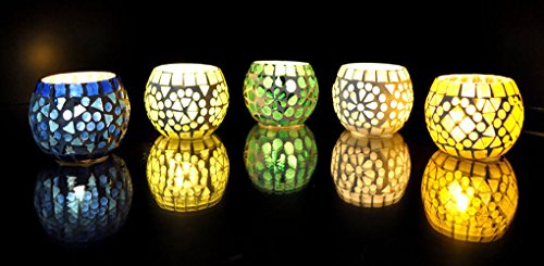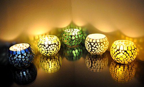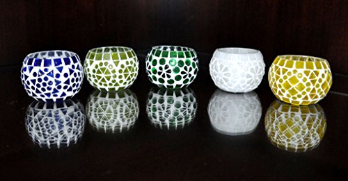 Mosaic Glass Round Candle Votive Holder 5 Pcs Set