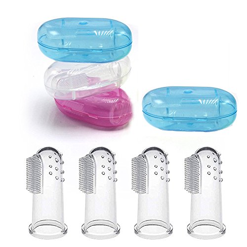 -. Title : Baby Finger Toothbrush (4 PCS),CHFUN Baby Food Grade Silicone Toddler Toothbrush With Case Set Oral Massager Christmas Gifts for Infant &Toddlers, Toothbrush Teether