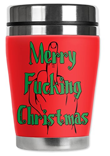 Mugzie Merry Fcking Christmas "Mini" Travel Mug with Insulated Wetsuit Cover, 12 oz, Black