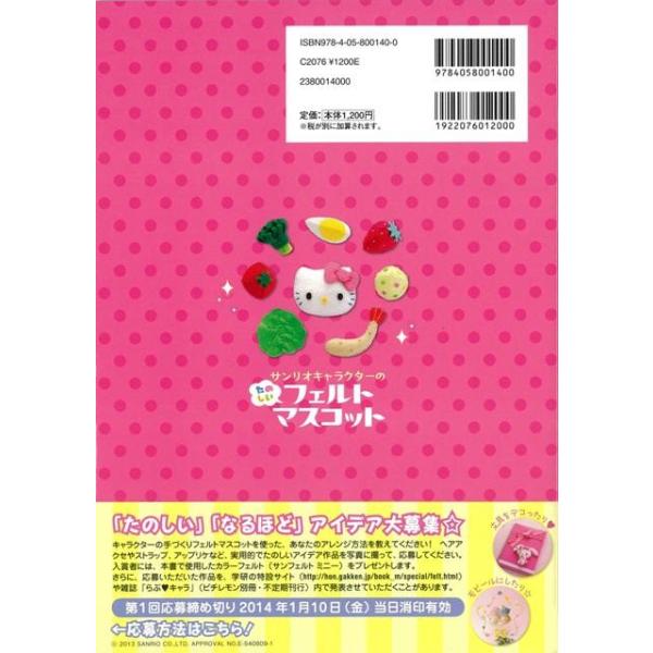 【商品基本情報】 商品名称:サンリオキャラクタ―のたのしいフェルトマスコット 著者/出版社:寺西 恵里子/寺西 恵里子 初版発行日:2013/10/02 サイズ:B5判 ページ数:63 ISBN/JAN:9784058001400/4528189421851