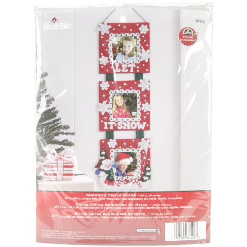 Bucilla Felt Applique Triple Frame Wall Hanging Kit, 6.5 by 19.5-Inch, 86422 Snowman
