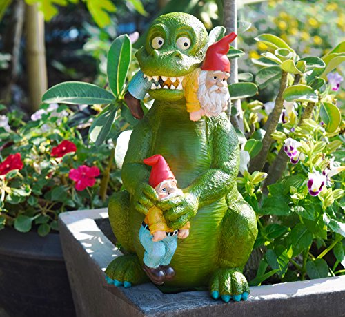 GARDEN GNOMES BEWARE!! - DINO THE DINOSAUR GNOME EATER IS HERE- In fact Dino's Arrival in Your Garden is All The Gnomes and Garden Fairies Are Talking About!