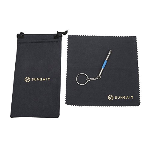 INCLUDES 1*Cleaning soft cloth 1*Cleaning soft fabric sunglasses pouch 1*Mini 4 in 1 Stainless Steel Screwdriver Keychain Precision Eyeglass Repair Tool