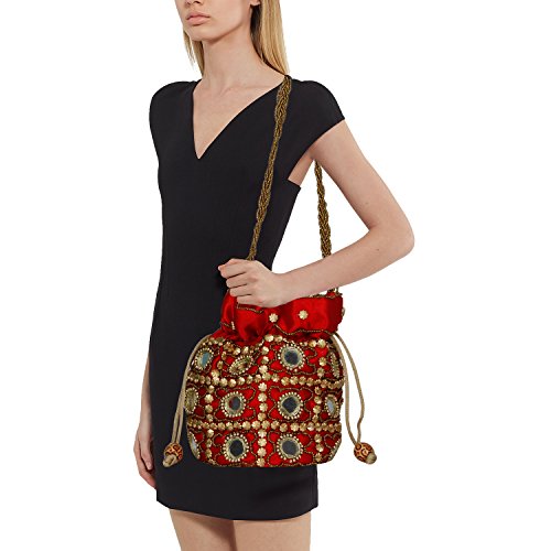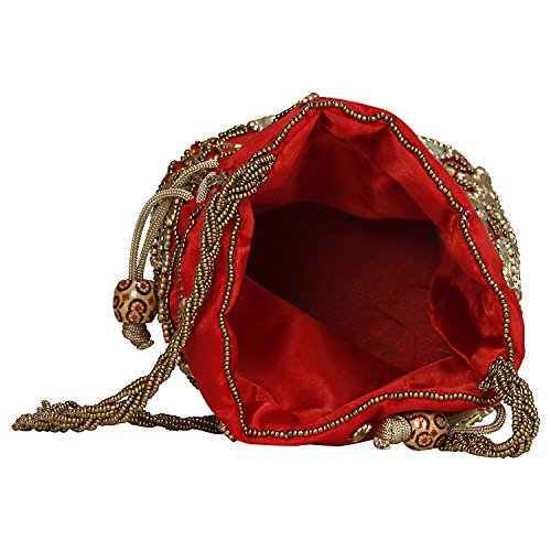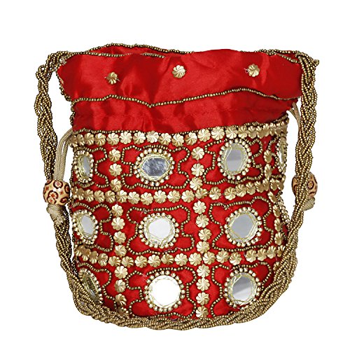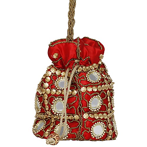 The Stylish Potli will definitely make you look trendy. The design of closing is unique. It has enough space to keep things organized. FEATURES: - Light Weight Traditional Potli Bag Unique Pattern Birthday Gift for all ages Hand Crafted Wedding Potli, Ethnic Potli, Match With All Dresses, Elegant Look