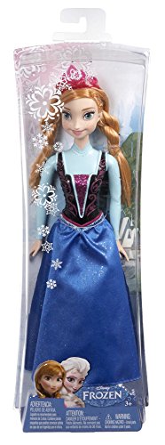 -. Feature : Based on the beloved, heroic younger sister Anna, from Disney's animated hit Frozen / Anna dazzles in sparkling fashions with signature colors / Wearing a glittery, detailed bodice, satiny calf-length skirt, and glittery tiara / This irresistibly charming heroine is truly ready to sparkle happily ever after / Girls will love playing out the enchanting scenes from Frozen Anna and her sister Elsa sold separately)