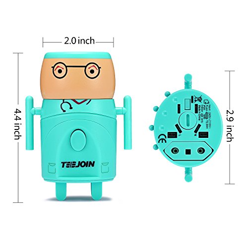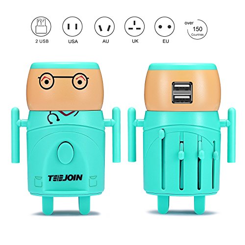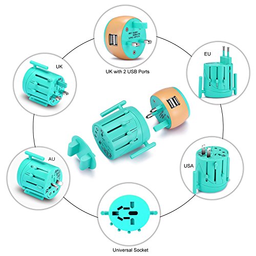 TEEJOIN Travel Adapter, All-in-One World Adapter Plug, Worldwide Travel Adapter Charger,Wall AC Adapter with [Us UK Eu Au/CN] Plugs and Dual USB Charging Ports,Universal AC Socket Blue