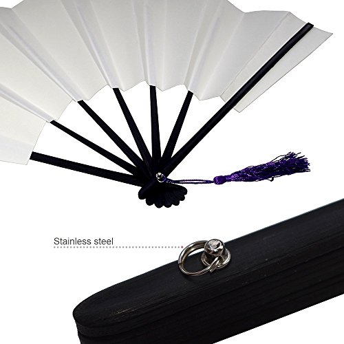 - [Material]: Double-Sided Paper, So That the Fan is More Tough. Fan Frame Using the First Layer of Bamboo Skin, the Material is More Flexible, Smooth Surface, Not Stabbed. Stainless Steel Buckle is More Durable and Beautiful Than Iron Buckle.Easy to Carry and Collection