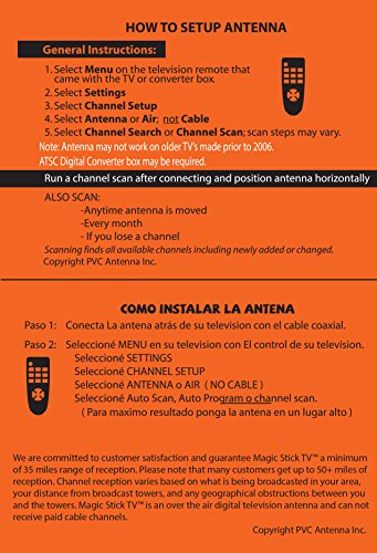 Includes: Magic Stick TV Antenna, 16 ft White or Black Coaxial Cable