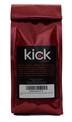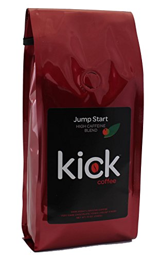 JUMP START BLEND: Dark French Roast, 12 oz. High Caffeine Ground Coffee, Rich Bold Strong Intense, Classic European Blend, Very Dark Chocolate Tones, Velvet Finish, Brewed/Espresso