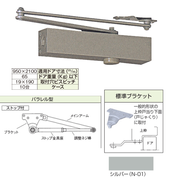 ●仕様:パラレル型・ストップ付(ストップ角度70~180°)・ドア重量65kgまで