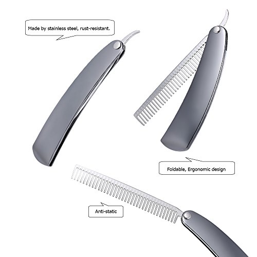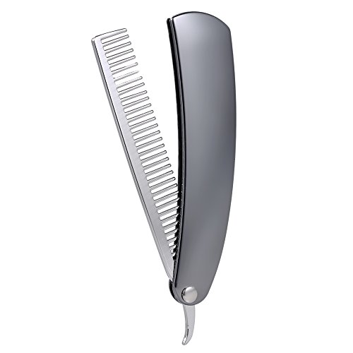 Anself Stainless Steel Foldable Beard Comb Shaving Pocket Comb Portable Mustache Brush