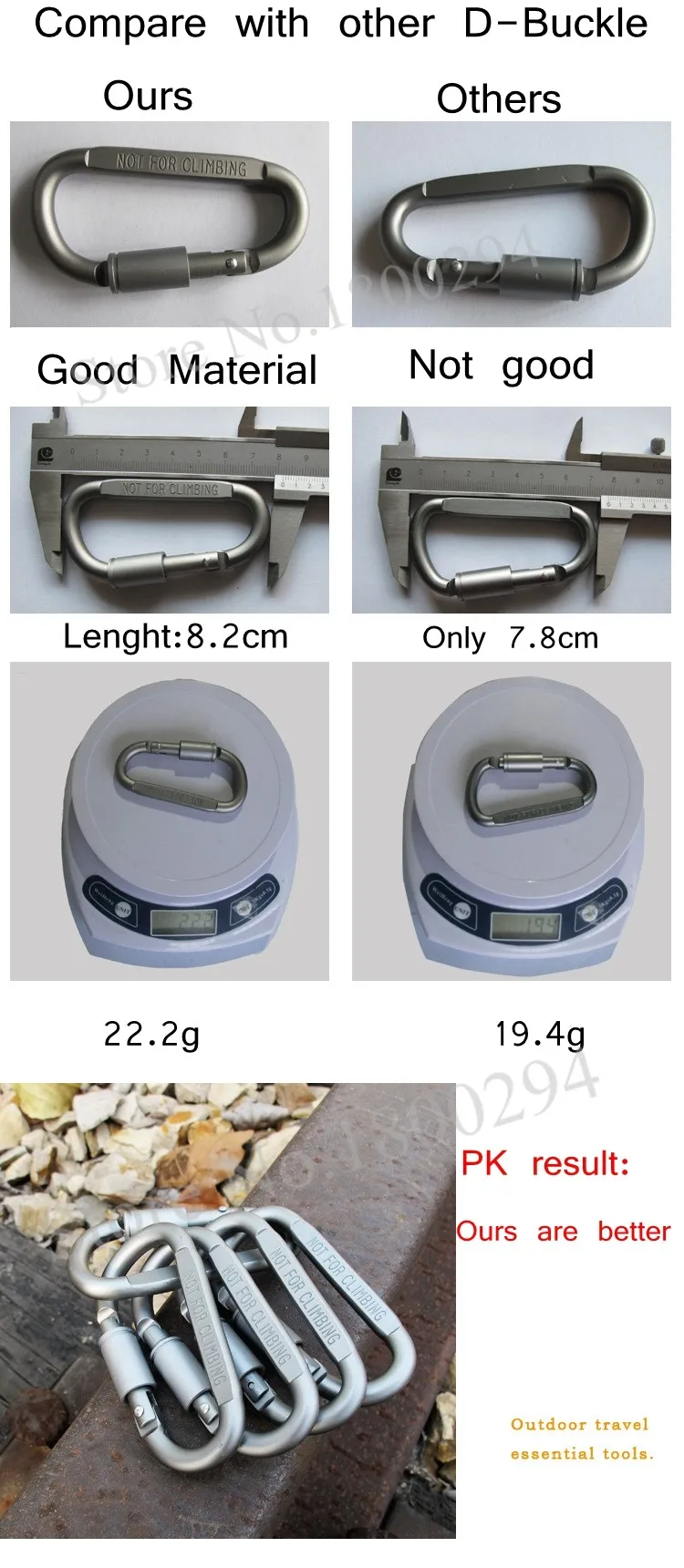 Brand:Shinetrip  5PCS D Shape Carabiner Multifunctional Camping Equipment