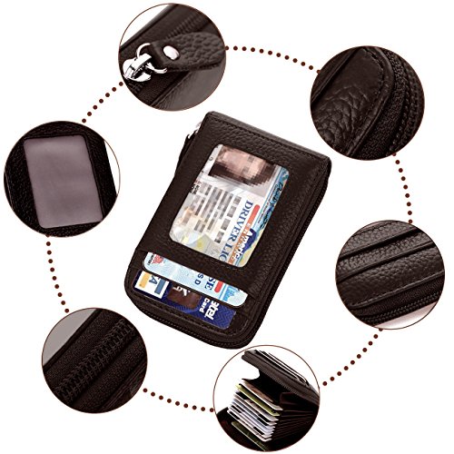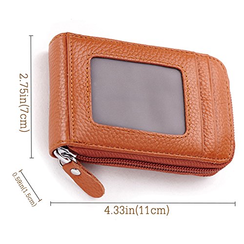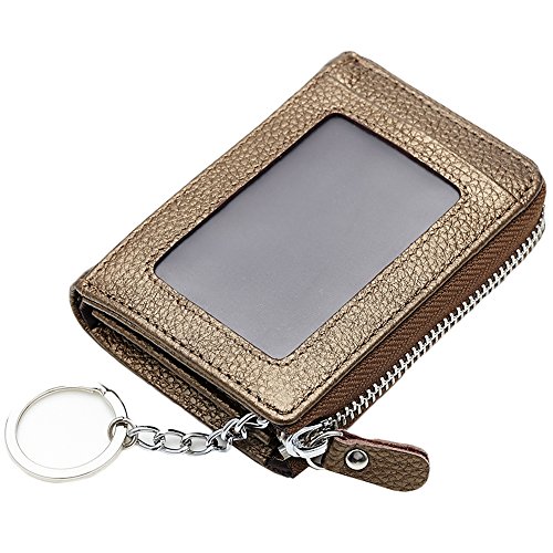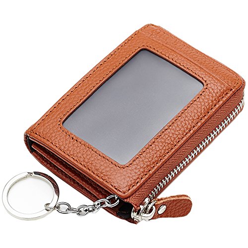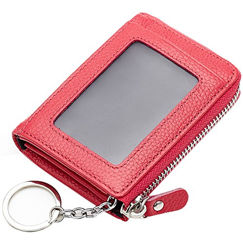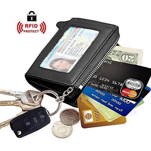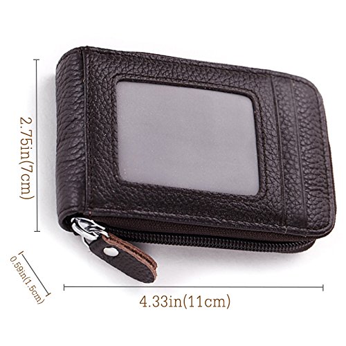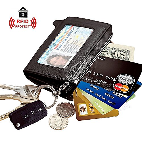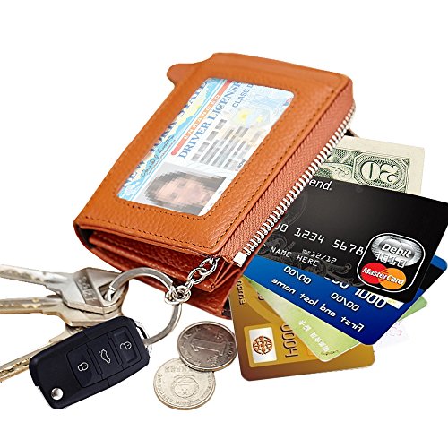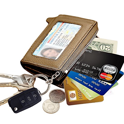 [Description] Premium Material: Durable Cowhide leather construction makes it Scratch Resistant & Wonderful Touching Measures: 4.33 x 3.14 x 0.98 inches Compact zipper wallet case with 2 large compartments + 2 card slots for cash_ coins_ changes and many credit cards + 1 ID window outside A specially designed Removable key ring chain for car keys_ house keys and hanging on the pant_ very convenient carrying Durable & gliding zipper with elegant nylon stitching _ no break lines_ elegant model_ very prime! Material: Premium cowhide Leather_ combines with built-in high quality microfiber. Soft_ smooth. Scratch-resistant & Comfortable hand feeling. Measures: 4.33 x 2.76 x 0.59 inches. Special slim size approaching to iPhone 4s. Neat Compartment & Spacious Division: 9 card slots inside enough for your credit cards & debt cards_ 1 ID window and 1 card slot outside_ 2 Larger Card / Coin pockets inside. Scientific arrangement makes it easy to find what you need. Exquisite packaged can be sent as a GIFT! Compact Design & Versatile 5 Colors Choice: Compact & Professional Business Design for versatile cards. You can leave a bigger pouch for your coins or CAR KEY. Zipper closure brings better security. Hand made by professional artisans. Neat & Elegant stitching. Stylish and economically priced. Perfectly designed for you!