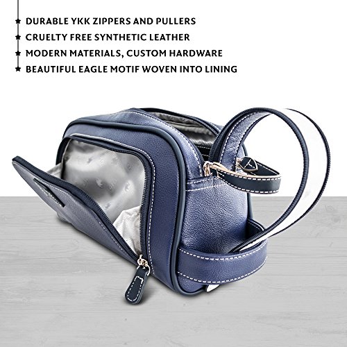 "Simplicity is the ultimate sophistication" - Leonardo da Vinci Vetelli has tailored the Gio to the unique needs of the traveler living in the 21st Century. Modern materials, custom hardware, and heavier stitching ensures the Gio can stand the tests of time and rigors of travel. On the outside is a beautiful, supple PU leather that's cruelty free and is water resistant so your Gio can accompany you on every vacation, family holiday and adventure. You can open our masterpiece via Vetelli's YKK pullers, clasps, and blind zippers, considered the most durable and reliable in the world, with the teeth turned inward so they are hidden from sight. Rest assured, the Gio is more than just a pretty face. True beauty starts on the inside The Gio opens wider and deeper than typical toiletry bags, making it easier to find, place, and keep your essentials at your fingertips. With more space when compared to other brands, you have plenty of room for your little luxuries. Look at the gorgeous silver inner lining, treated to be water and stain resistant.? Protected from liquids and leaks, crafted with a combination of cotton and polyester using a reinforcing weaving technique called jacquard ripstop that's also used in yacht sails, hot air balloons, and parachutes. Thicker threads are interwoven in a crosshatch pattern, rendering a fabric that resists rips and tears, and the eagle motif is also woven, not printed, so it lasts forever. 0 |