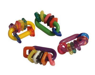 Product DescriptionPack of 4 foot toys for the little birds. Colored plastic chain with gel shapes threaded on.0