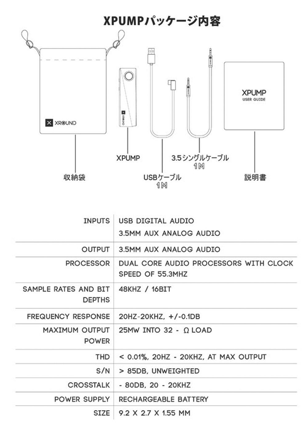 The XPUMP main body is a compact stick type that can be easily connected to the speaker (home, desktop, portable) and headphones you are using.