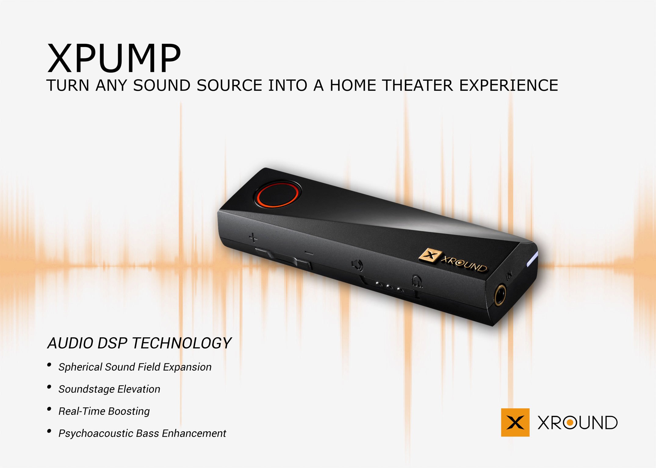 XPUMP uses a digital signal processing algorithm called XROUND to convert a flat stereo sound into an immersive 3D listening experience.