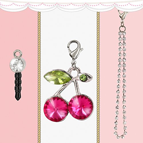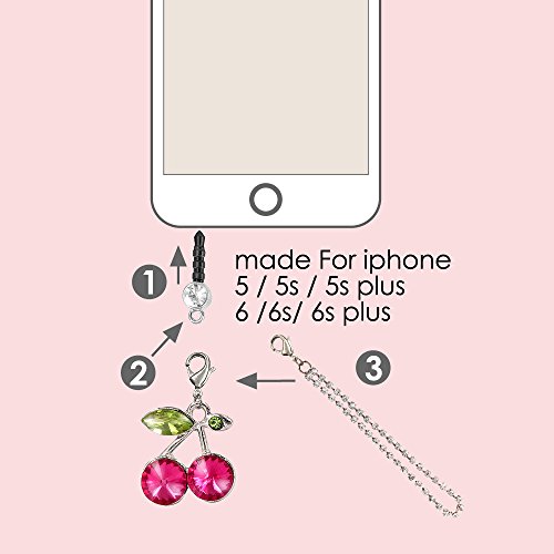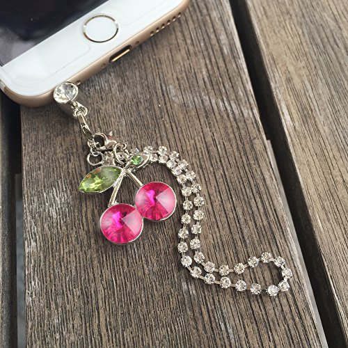 Cell Phone Charm Anti Dust Plug Crystal Hot Pink Cherry Accessory for iPhone 5 5s 6 6s, ipods, ipads IP690-M0316