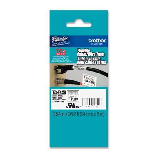 Brother Laminated Flexible ID Black on White 1 Inch Tape - Retail Packaging (TZeFX251) - Retail Packaging