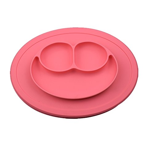 We've all been there.... "THE DREADED MEALTIMES" - A curious infant has decided it's a great idea to tip his entire plate on the floor! You've just finished cleaning and here you go again! Well no more - we can make mealtimes fun again! WELCOME TO THE PLACEMAT PLATE Made of 100% food-grade silicone; Non-Toxic, BPA, BPS, PVC, lead and phthalate free, unbreakable, no spill, non-stick "stress buster"! Fill the 3 divisions of the plate with a balanced meal made up of your toddler's favorite food (be as creative as you like) and place the meal in front of him/her either on the table or on the tray of the high chair. Yes, unlike other placemat plates, ours fits the high chair! Boredom will set in a lot slower because: 1. He/she will love the eye catching pink color. 2. Your baby will get a thrill from the smiley face of baby food. 3. He/she will be thrilled with the bonus spoon that comes with this set. When the inevitable "throwing of the plate" is about to happen, well guess what! It won't because the placemat plate is firmly suctioned to the table and unlike other placemat plates, ours is round so your child can't find a corner to lift up the suction! When the meal is finished just lift up one the side of the placemat to release the suction and remove to the sink or dishwasher. Cleanup couldn't be any easier. AN ORIGINAL GIFT - Since we've had our placemat plate, we have had no problem coming up with baby shower or first or second birthday gifts! This is the best Baby Plate Gift Set. Every one of our friends and family who have seen the Placemat Plate have been totally in awe of this wonderful idea. DON'T FORGET! We have a 30 day 100% Refund Policy. If you are unhappy with this product for any reason just return it for a full refund with no questions asked. We can afford to do this because we know you won't need to! So PURCHASE NOW and start enjoying fun and no stress mealtimes. 0