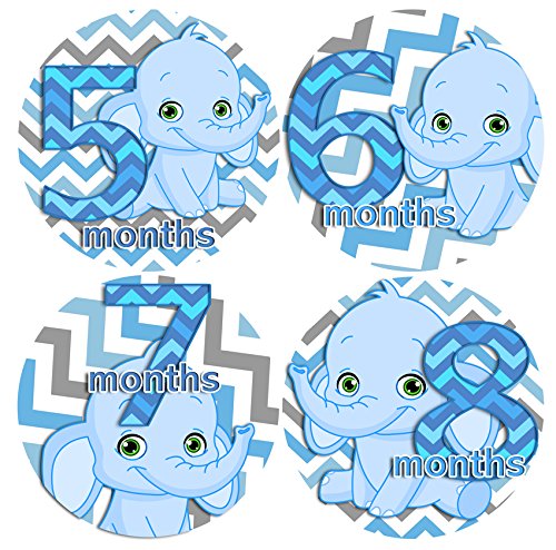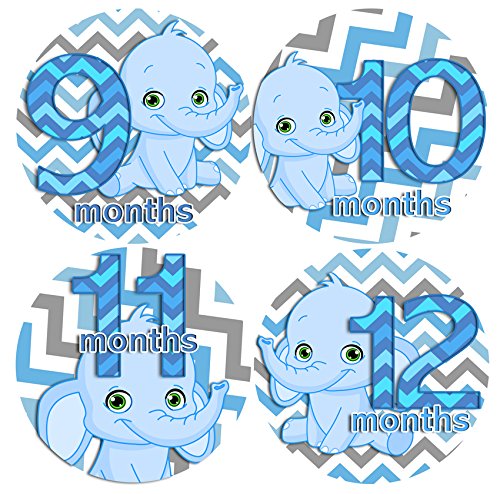 -. Binding : Baby Product -. EAN : 0641871966769 -. Feature : Adhesive sticker is thin and waterproof and applies right to the baby's outfit / Flexible and tear proof allowing it to bend with the babies movement / Monthly Stickers 1-12 for picture taking / Unique baby shower gift / Great for memories and milestone photos -. Label : BABY MONTHLY STICKERS -. Manufacturer : BABY MONTHLY STICKERS -. PackageQuantity : 1 -. ProductGroup : Baby Product -. ProductTypeName : BABY_PRODUCT -. Publisher : BABY MONTHLY STICKERS -. Studio : BABY MONTHLY STICKERS -. Title : CHEVRON BLUE ELEPHANTS BLUE BOY 1-12 Months Baby Monthly One Piece Stickers Baby Shower Gift Photo Shower Stickers -. UPC : 641871966769