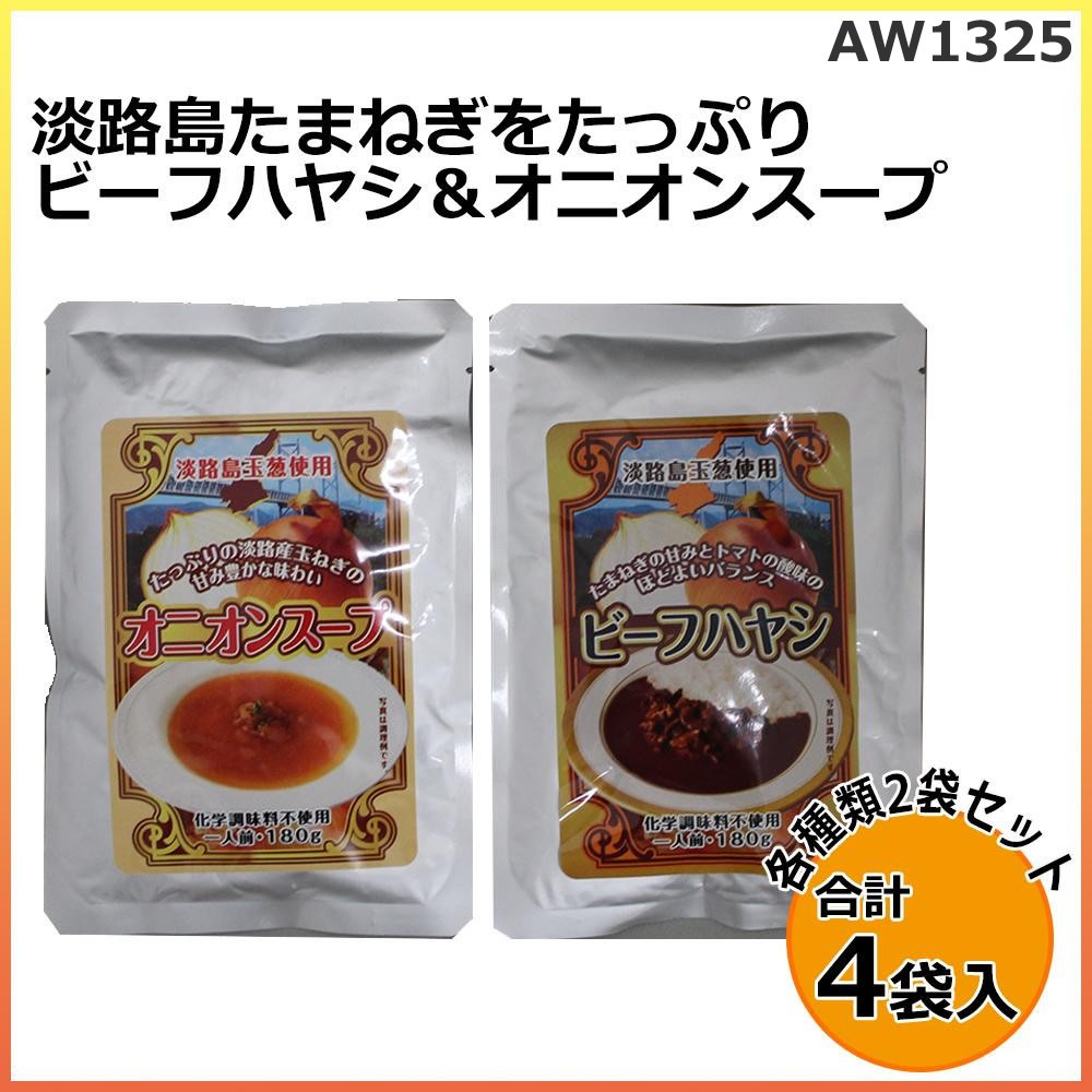 玉ねぎの甘みとトマトの酸味のほど良いバランスが特徴の「ビーフハヤシ」とたっぷりの淡路産玉ねぎの甘みが特徴の「オニオンスープ」をセットにした商品です。 |