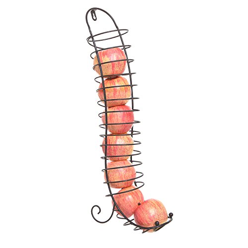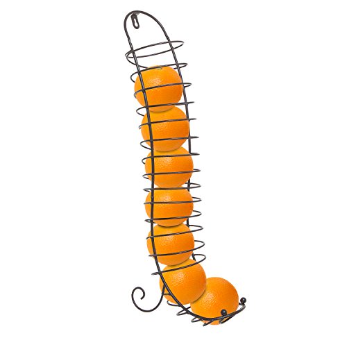 The coiled metal creates a chute-like space that holds round fruit like oranges and apples and ensures that the next piece of fruit in line always rolls forward.
