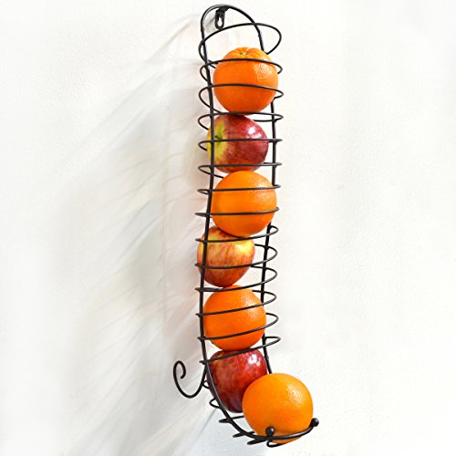 MyGift Wall Mounted Wire Fruit Dispenser, Hanging Kitchen Storage Basket, Brown