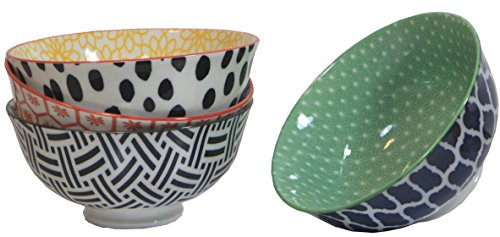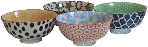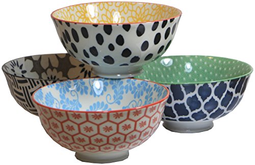 This set of four hand-selected Certified International contemporary ice cream bowls (4.75 inch diameter) create a beautiful table setting and are perfect for entertaining. They are smaller than a cereal bowl and hold approximately 12 fluid ounces (1.5 cup capacity). These unique bowls feature bright geometric and floral patterns from the Chelsea Mix and Match collection. Perfectly sized for dessert, these stunning ceramic bowls will brighten up any meal or special occasion and are sure to impress your guests. Dishwasher and microwave safe.Feature