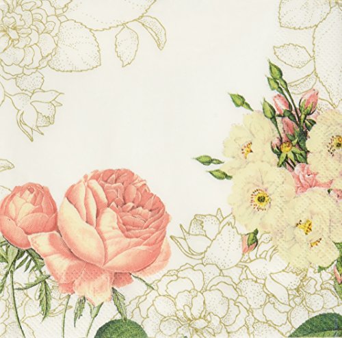 - 20 floral paper cocktail napkins 25cm x 25xcm