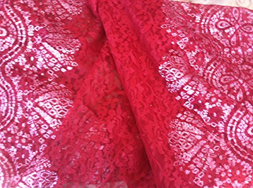 Fancy Red Rose Lace Fabric with Rasberry Flower Glitter Design ~2 Yds~58"wide