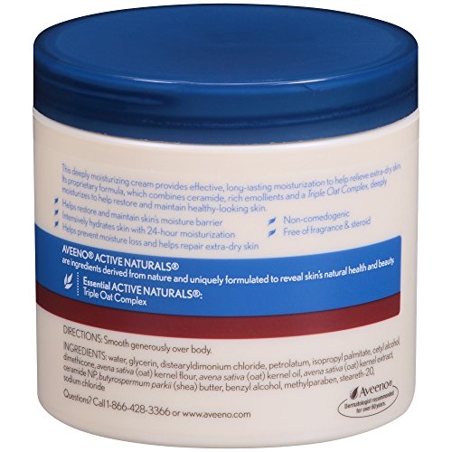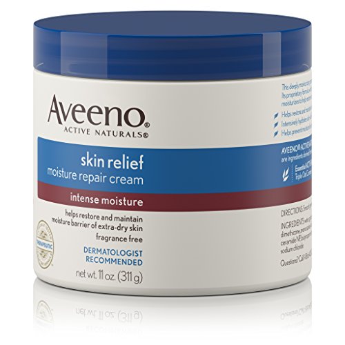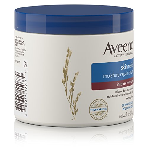 Studio : Aveeno ReleaseDate : 2011-12-09 Publisher : Aveeno Binding : Misc. Product Description AVEENO Skin Relief Moisture Repair Cream helps restore and maintain healthy-looking skin, while maintaining the moisture barrier of extra-dry skin. This dermatologist-recommended formula combines ceramide, rich emollients, and ACTIVE NATURALS Triple Oat Complex, which is clinically shown to deeply moisturize and relieve extra-dry skin. Delivering intense hydration with 24-hour moisturization, AVEENO Skin Relief Moisture Repair Cream is steroid-free, fragrance-free, and non-comedogenic. 0