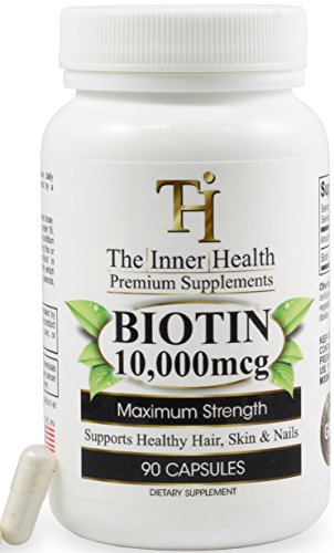 -. Title : Inner Health Biotin for Hair Growth, Maximum Strength 10,000 MCG, Supports Healthy Hair, Skin and Nails, 90 Capsules