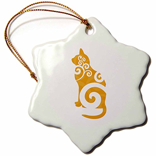 3dRose orn_41078_1 Swirly Cat Silhouette Orange Snowflake Porcelain Ornament, 3-Inch
