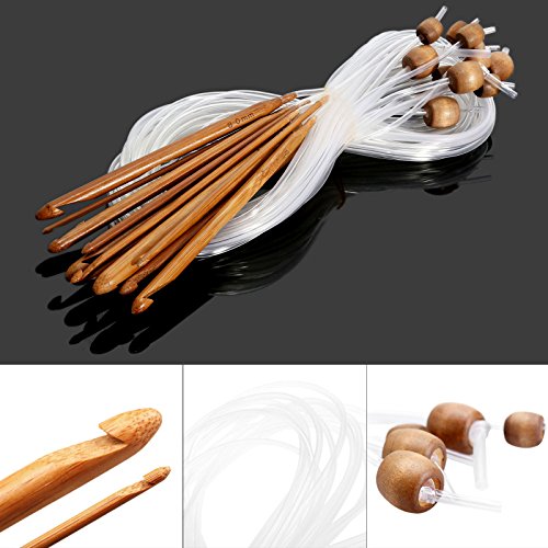 Dophee 12 Sizes 1.2M 48" Afghan Tunisian Carbonized Bamboo Needle Crochet Hooks Set