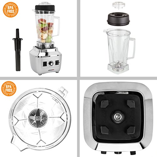 Ultratec Power Standmixer 2.0 Liter / BPA-FREI / 1.500 Watt / 28.000 U/min. / 6 Edelstahlmesser / inkl. Stossel & Smoothie Rezeptbuch